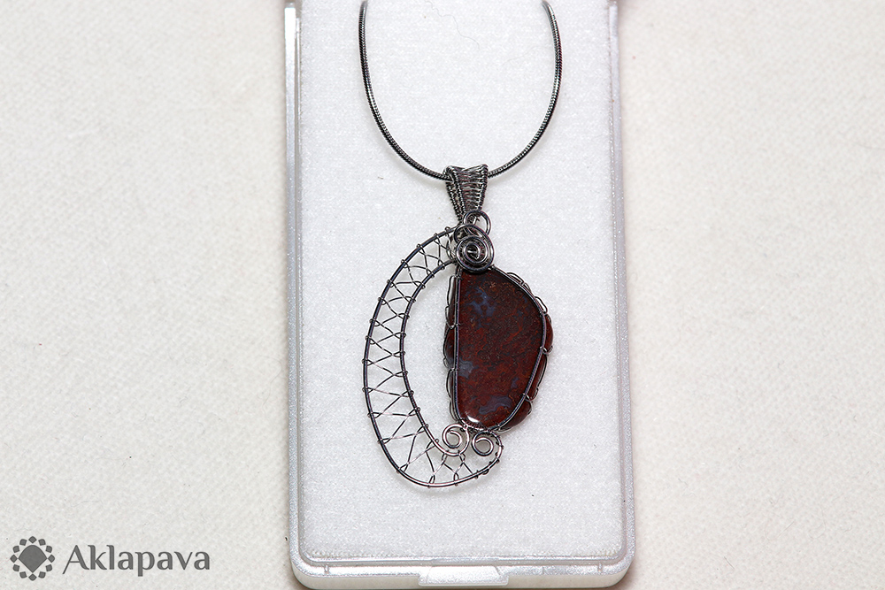 PM426Náhrdelník s jaspisem z Čech z lokality Rašovka. Náhrdelník je drátkován nerezovou ocelí 316L (chirurgická). Je zavěšen na řetízku z oceli 304. S dárkovou krabičkou. Více o jaspisu (fakta, esoterika, historie) se dočtete v článku na blogu: http://www.aklapava.cz/blog/2017/01/jaspis/