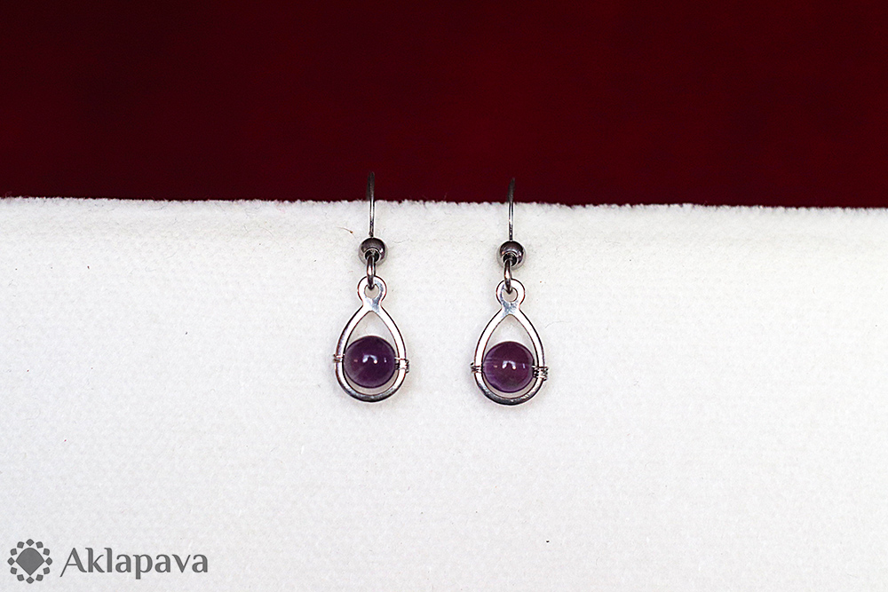 BM093Ocelové kapky s minerálem ametystem v hladkých kuličkách. Kapky jsou z oceli 304 (tzv. potravinářské). Krátké háčky z oceli 316L (tzv. chirurgické či švédské) jsou opatřeny silikonovými zarážkami proti vypadnutí. Díky své drobné velikosti jsou náušnice vhodné pro ženy, které dávají přednost menším náušnicím a také velice vhodné pro malé slečny.