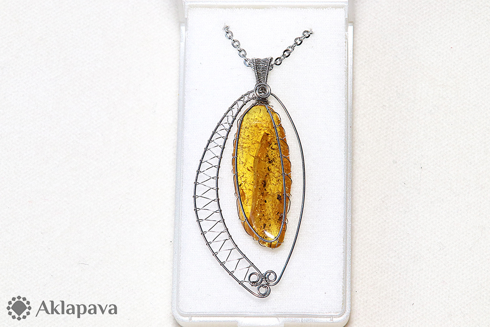 PM334Náhrdelník s jantarem z Polska - lokalita Gdaňsk. Drátek z nerezové oceli 316L (tzv. chirurgická či švédská). Zavěšen na řetízku z nerezové oceli 304 (potravinářská). Více o jantaru (fakta, esoterika, historie) se můžete dočíst na našem blogu: aklapava.cz/blog/2024/03/jantar/