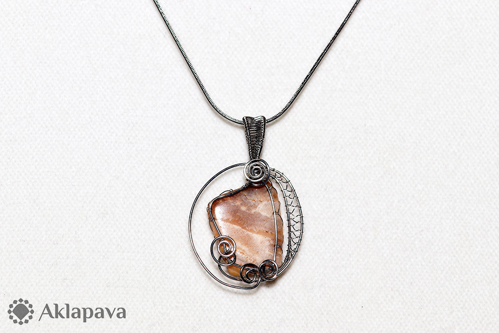 PM435Achát z Německa drátkovaný chirurgickou ocelí. Náhrdelník je zavěšen na ocelovém hadím řetízku. Podle esoteriky dodává achát odvahu, pocit jistoty a bezpečí. Více o achátu na blogu: https://www.aklapava.cz/blog/2016/12/achat/