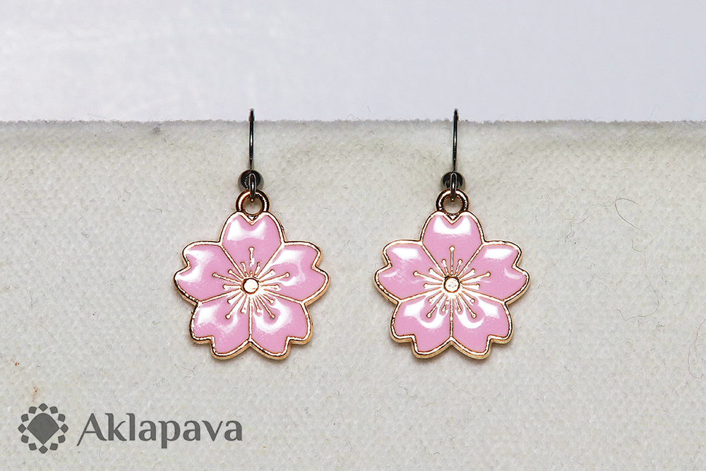 BO023Kovové náušnice ve tvaru květů japonské třešně sakury. Háčky hypoalergenní z nerezové oceli AISI 316L (tzv. chirurgická či švédská) opatřené silikonovými zarážkami proti vypadnutí.