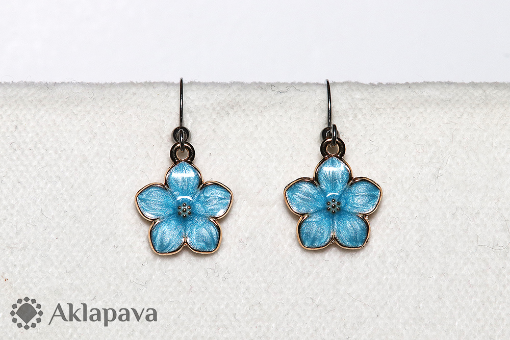BO028Kovové náušnice ve tvaru květin zavěšených na háčcích z nerezové oceli AISI 316L (chirurgická), opatřených silikonovými zarážkami proti vypadnutí náušnice.