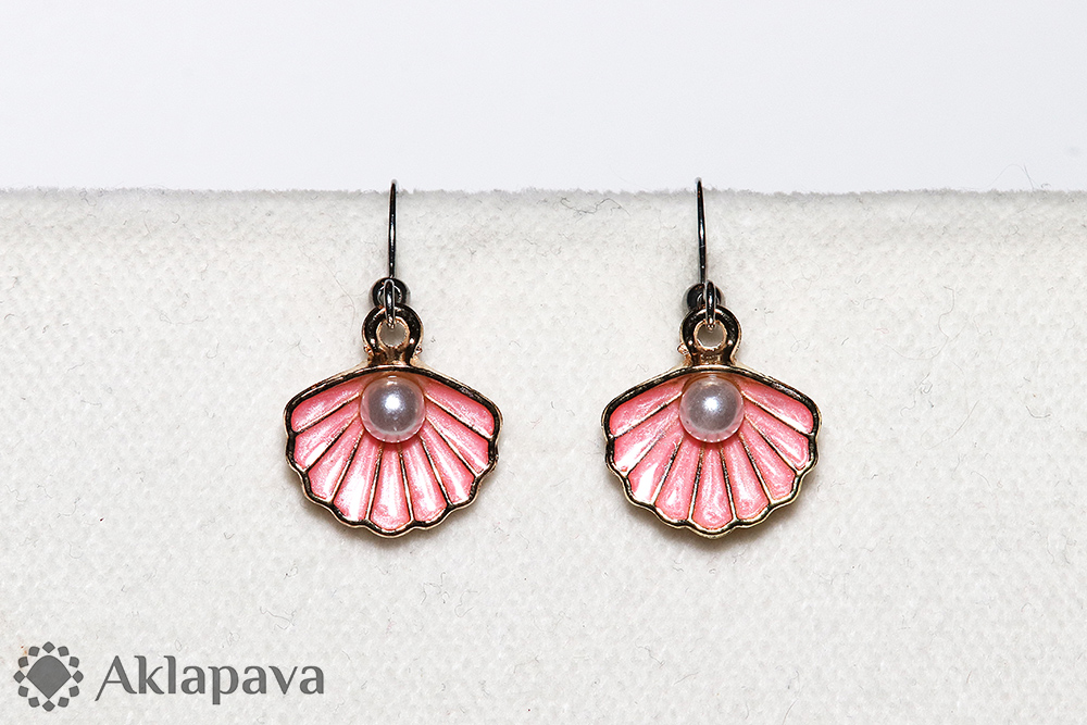 BO031Kovové náušnice ve tvaru perel v lastuře zavěšených na háčcích z nerezové oceli AISI 316L (chirurgická), opatřených silikonovými zarážkami proti vypadnutí náušnice. Budou slušet malým i velkým.