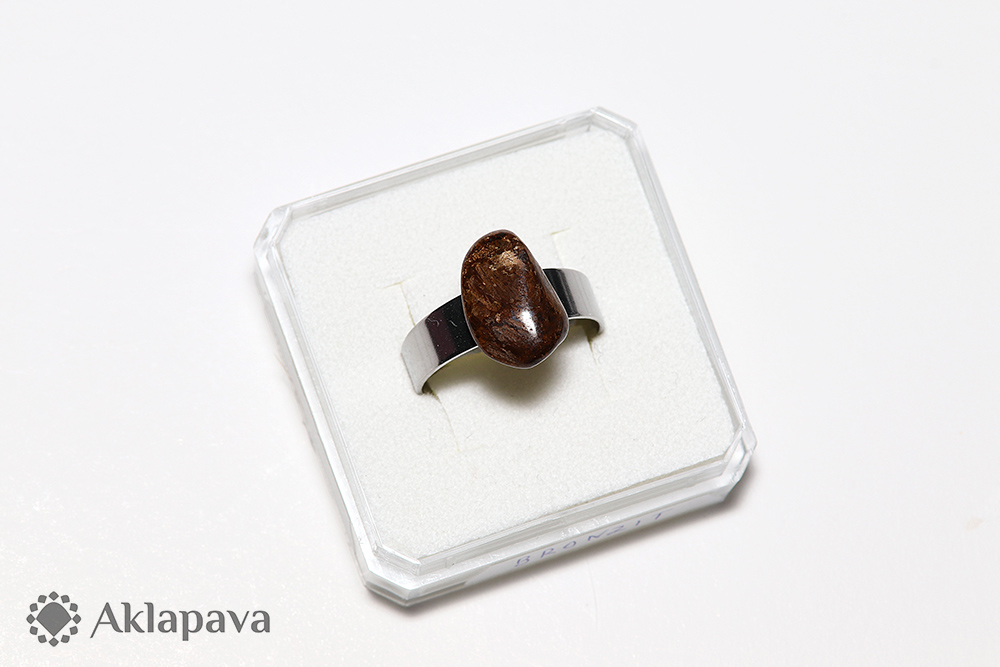 DB002Prsten s kouskem tromlovaného kamene bronzitu z Brazílie Kroužek je z nerezové oceli AISI 316L, tzv. chirurgická a je roztažitelný.