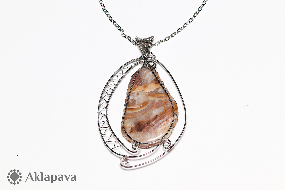 Drátkovaný náhrdelník s achátem z Německa. Drát - ocel 316L, řetízek - ocel 304. Podle esoteriky prý achát přitahuje bohatství, štěstí a nové přátele. Více o achátu (fakta, esoterika) na blogu: aklapava.cz/blog/2016/12/achat/