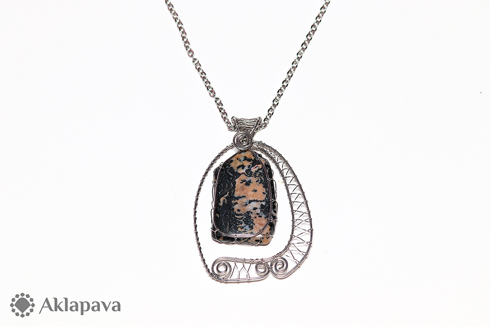 Drátkovaný náhrdelník s minerálem jaspisem z české lokality Kozákov. Drát - ocel 316L, řetízek - ocel 304. Uložen v krabičce. Podle esoteriky prý přináší klid a pomoc ve stresu. Dodává odvahu k naplnění všech záměrů. Pozvedává krásu a půvab. Více o jaspisu na blogu: aklapava.cz/blog/2017/01/jaspis/